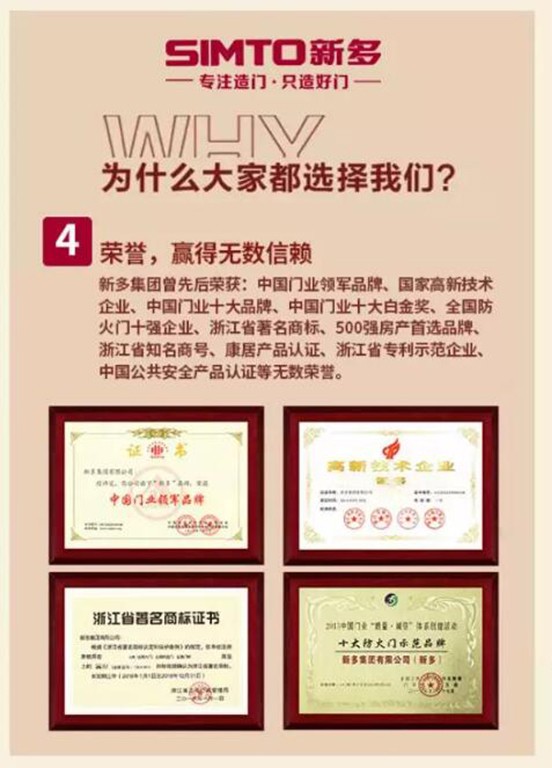 Xinduo Group is located in Yongkang, Zhejiang Province, which is known as the "Door Capital of China", founded in 1995 and upgraded to Xinduo Group in 1998. After 22 years of development, Xinduo has become a professional modern door-making group integrating design, manufacturing, import and export trade, with headquarters covering an area of 250,000 square meters, six sub-factories in Yongkang, Zhejiang and Wuyi, Zhejiang, registered capital of 100 million yuan, fixed assets of 1.2 billion yuan, more than 2,000 employees and an annual production capacity of more than 2 million doors. The products cover 7 major products such as high-end security doors, high-end villa doors, precision wood doors, high-end armored doors, fire doors, building doors and intelligent security systems. Due to its exquisite craftsmanship and perfect quality, "Xindo Door" has become a synonym of domestic high quality door and security door brand. With the leading brand advantage and excellent quality, Xinduo Group has become the industry benchmark that is looked up to in the door industry in China.
